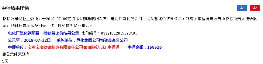 恭喜寶雞寶冶鈦鎳制造公司鈦管道鈦管件連續中標13709174820